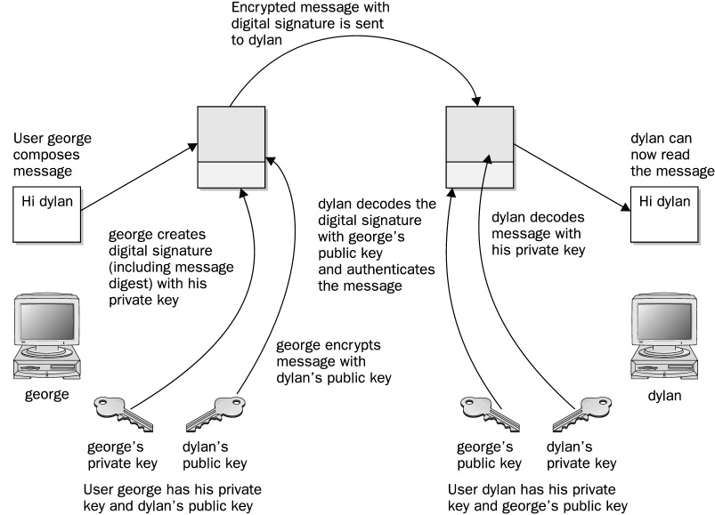 Encrypting data is the only sure way to secure data transmitted over a network. Encrypt data with a key, and the receiver or receivers can later decrypt it. To fully protect data transmitted over a network, you should not only encrypt it but also check that it has not been modified, as well as confirm that it was actually created by the claimed author. An encrypted message could still be intercepted and modified, and then reencrypted. Integrity checks such as modification digests make sure that the data was not altered. Though encryption and integrity checks protect the data, they do not authenticate it. You also need to know that the person who claimed to send a message actually is the one who sent it, rather than an imposter. To authenticate a message, the author can sign it using a digital signature. This signature can also be encrypted, allowing the receiver to validate it. Digital signatures ensure that the message you receive is authentic.