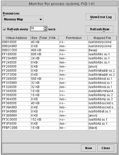 To view the properties of a process, double-click the process, or right-click the process and choose Properties, or select the process and choose Action ➣ Properties. The Properties window for the rpcbind process, PID 141, is shown in Figure 8.4.