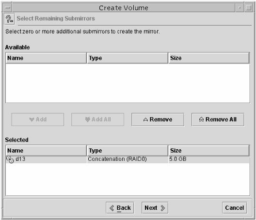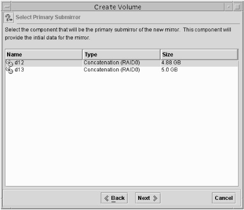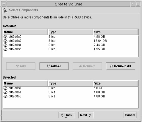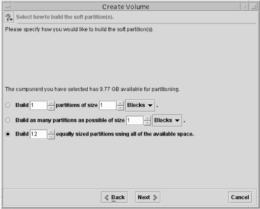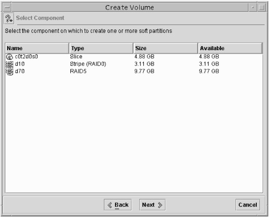 Select the components on which you want to create the soft partition. You will notice that if you have RAID volumes, they will appear here as valid choices. After you have made your selection, click Next.