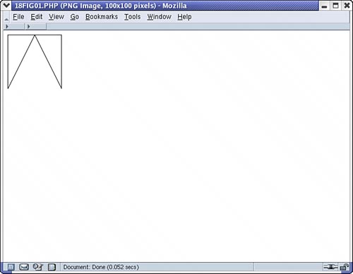 Index 0 and 1 of the array represent the first vertex, 2 and 3 represent the second, 4 and 5 represent the third, and so on. Also note that you are defining only the points on the canvas that make up the polygon, and when the polygon is rendered it will be automatically "closed" with a line connecting the last vertex back to the first. To illustrate this, Listing 27.1 creates a polygon shown in the following Figure 27.1. Listing 27.1. Drawing Polygons Using imagepolygon()